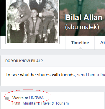 Bilal Allan, who identifies himself on his Facebook profile as an UNRWA employee (above), published a video this past June propounding classical anti-Semitic claims. According to Wassim al-Sissy, an Egyptian urologist and the interviewee in the video, America has become “putty in the hands of Global Zionism.” He approves of the notion that “the Jews in our country have gained control of our stomachs, our minds and our urges. All that is left is to change the name New York to Jew York.” He then falsely purports to quote Benjamin Franklin as saying “The undoing of America will be at the hands of the Jews.”