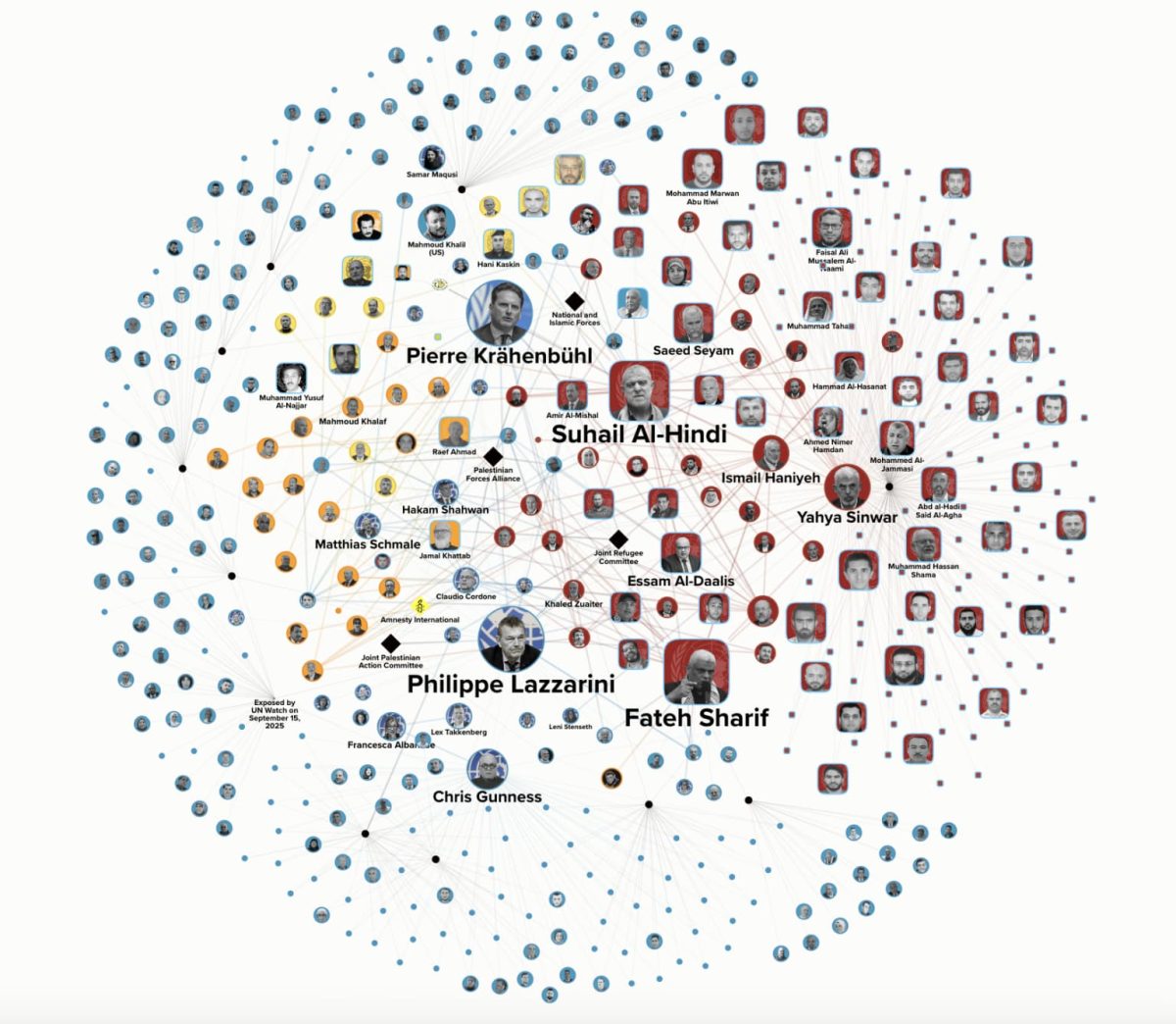 Users can browse between 490 profiles of UNRWA employees and terrorists and a complex web of 889 connections between them, including to the most senior UNRWA officials. Profiles are labeled according to affiliation with UNRWA, Hamas, Islamic Jihad, PFLP, and more, and include detailed sources and photographic evidence of terror ties.