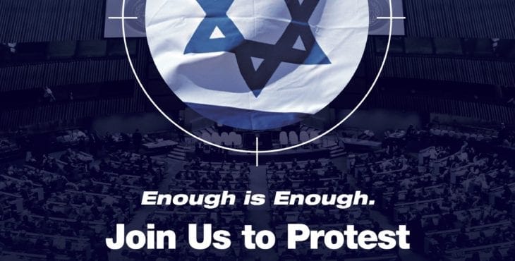 אנו מפגינים על מנת לדרוש סוף לדעות הקדומות ולחוסר הצדק בהטיה הנוקשה וחסרת הרחמים של האו"ם וסוף לדמוניזציה של האומה היהודית.