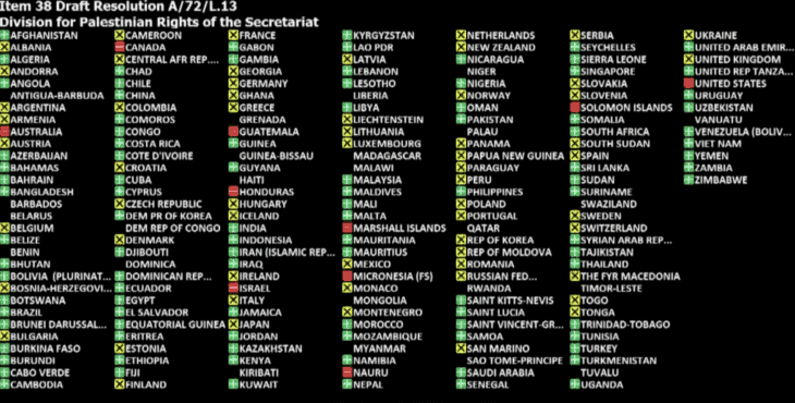 Click here for full chart of 20 resolutions targeting Israel at the 72nd session of the General Assembly.