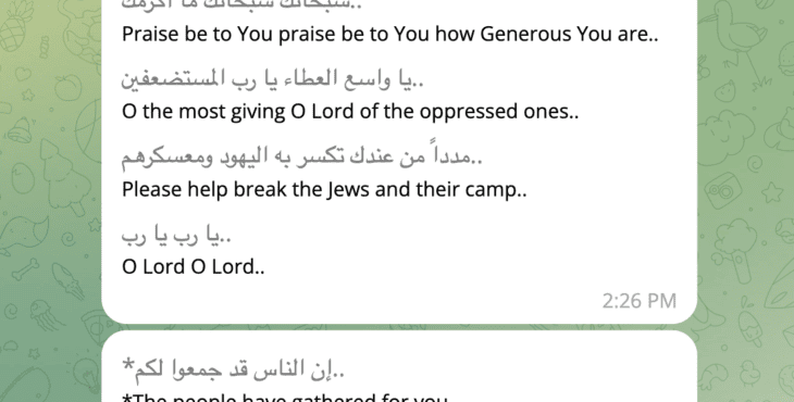 On October 13th, after Israel began its campaign of airstrikes against Hamas, Hussein prayed to “break the Jews and their camp.”