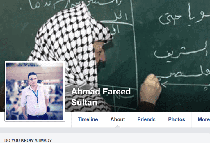 Ahmad Fareed Sultan, who identifies himself in his Facebook profile as a school teacher in UNRWA’s Zarqa Camp, located in A-Zarqa, Jordan, displays posts that glorify terrorists.