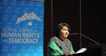 Pakistani women’s rights activist Dr. Rakhshinda Perveen addressed yesterday’s 6th annual Geneva Summit for Human Rights and Democracy. The full speech is available on video here at the 49:00 mark. Dr.