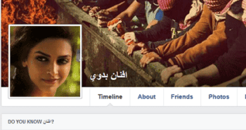 Afnan Badawi, who identifies herself on her Facebook page as a teacher at UNRWA, has since August 2014 had as her cover photo an image of masked Palestinians rocking