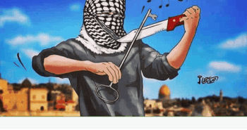 Hani Al Ramahi, who identifies himself on Facebook as a “Projects Support Assistant at UNRWA” (screenshot below), posted the violent image below on October 8th, in which a keffiyeh-clad man stares down the