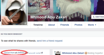 Mahmoud Abu Zakari, identified on his Facebook page as an UNRWA social worker, celebrated the stabbing of Israeli Jews on October 11th, by turning his profile picture into