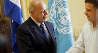 November 1, 2007, in Havana, Cuba: Jean Ziegler, UN Special Rapporteur on The Right to Food (L) is welcomed by Cuba’s Foreign Minister Felipe Perez