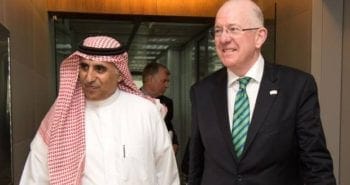 Irish FM Charlie Flanagan and Saudi official Nasser al Fawzan April 19, 2017 – the UN Economic and Social Council issues press release