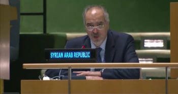UN Chief Ban Ki-moon: “I commend the leadership of all those committed to bringing new energy to its work” Left: Syria’s Bashar Ja’afari speaking