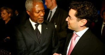 Arriba: El Secretario General Kofi Annan con Hillel Neuer, director ejecutivo de UN Watch. Washington DC, Mayo de 2006. GINEBRA, 18 de Agosto de 2018 –