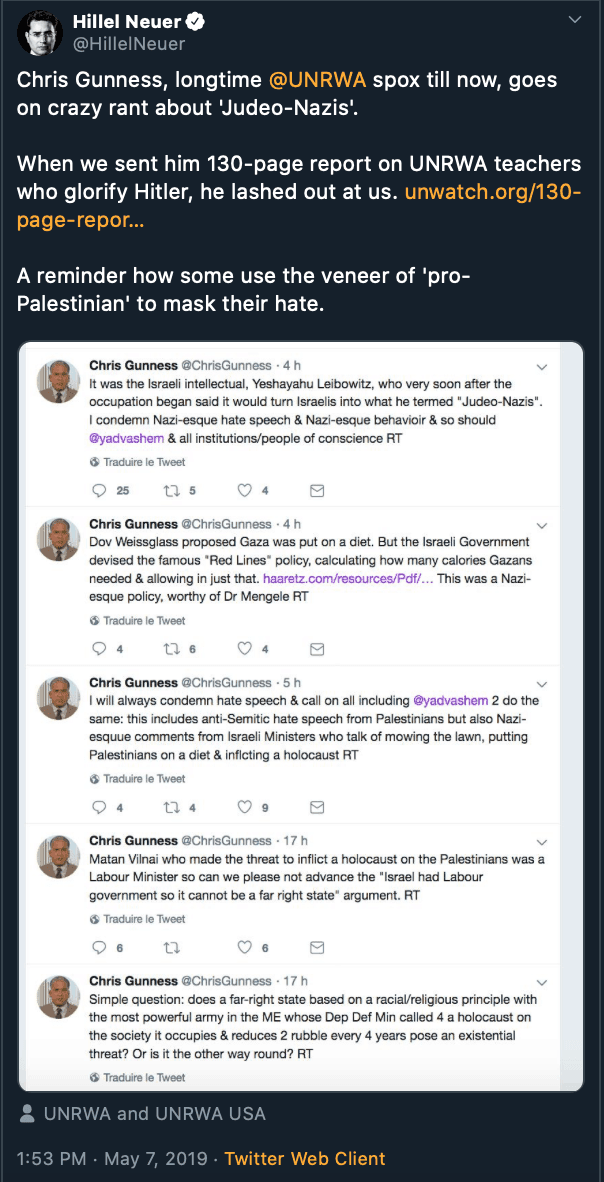 Chris Gunness, portavos de @UNRWA durante mucho tiempo hasta ahora, tiene un loco exabrupto sobre «judeo-nazis».