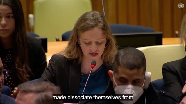 However, at that time, France — “speaking on behalf of the European Union and its member states” — took the floor to dissociate from consensus, and criticized Russia’s military aggression against Ukraine, saying violated the fundamental principles of the UN Charter, and inflicted unspeakable suffering on the Ukrainian population.
