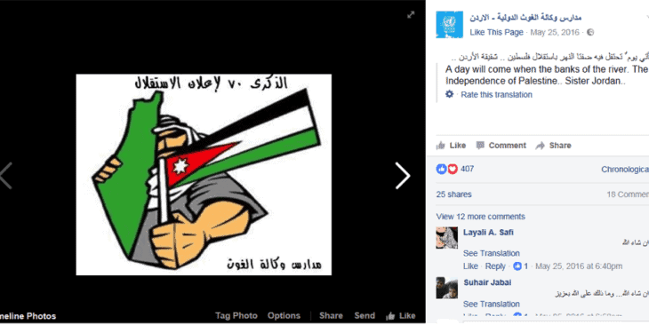 UNRWA Schools International – Jordan (مدارس وكالة الغوث الدولية – الاردن) is a Facebook page that provides information on UNRWA schools in Jordan to teachers, students and the broader community. The page has over 37,000 likes and frequently posts internal UNRWA documents, such as school calendars, class rosters, and lesson plans.