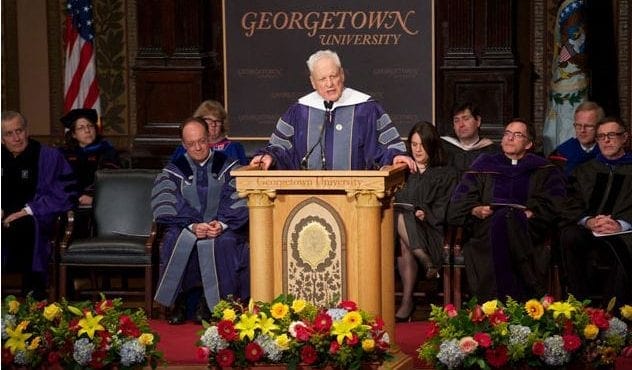 “Our leaders will come from the ranks of Georgetown, that not only survives for 200 years but flourishes as a symbol of liberal learning which searches for truth in the Jesuit tradition,” he said. “Georgetown remembers the oppressed and needy and that’s the highest obligation that we share as human beings.”