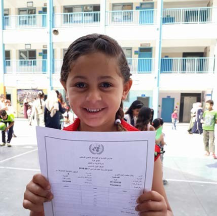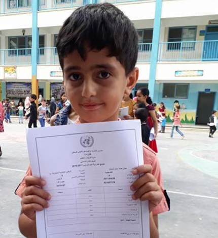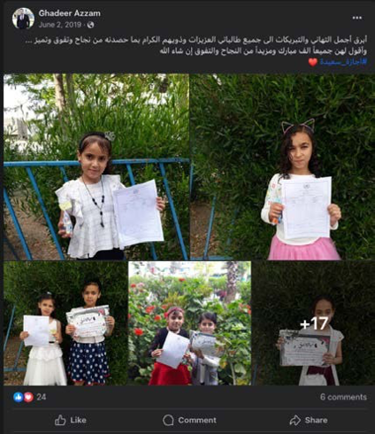 Ghadeer Azzam lists himself on Facebook as an UNRWA teacher. His profile contains many photos of his UNRWA classroom and children in an UNRWA school. Azzam endorses Hamas and prays for Hamas victory over the “unbelieving” Jews.