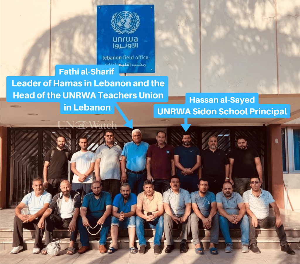Al-Sayed appears in a photo of the UNRWA Lebanon Teachers Union in front of an UNRWA field office in Lebanon in October 2022.