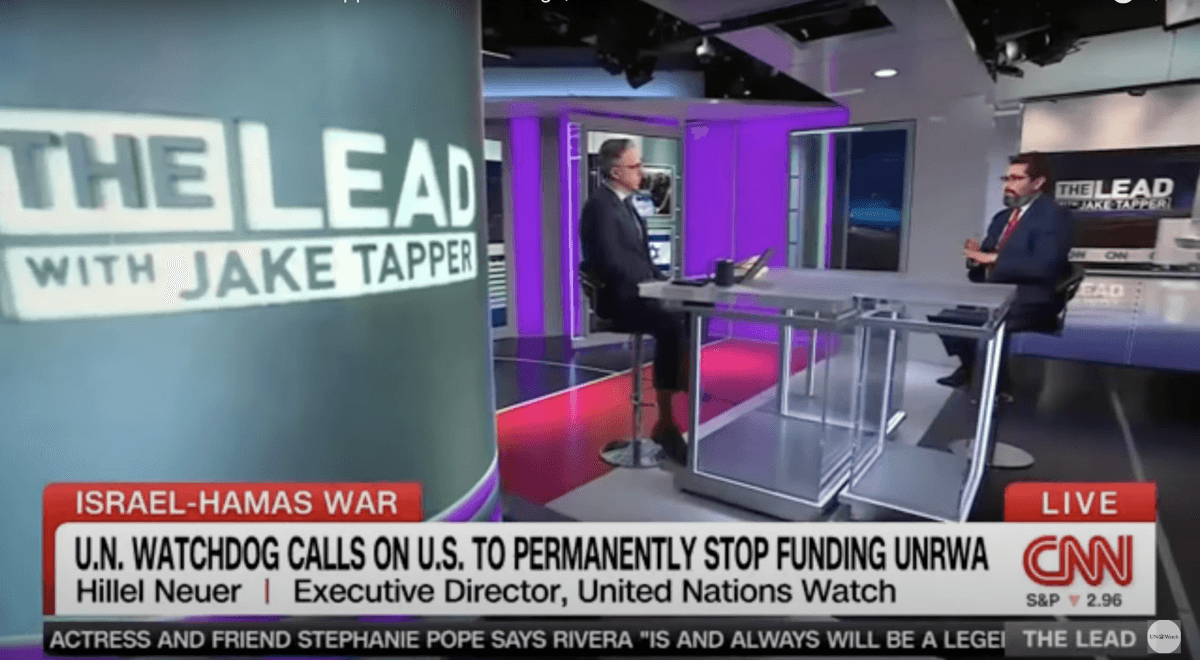 Hillel Neuer appeared on The Lead with Jake Tapper to discuss the growing case against UNRWA which has led its biggest donor states to cut funding.