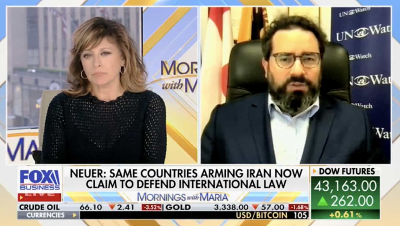 Hillel Neuer appeared on Fox Business with Maria Bartiromo to discuss the ceasefire between Israel and Iran, the weakness and absurdity of the United Nations, and the future ahead.