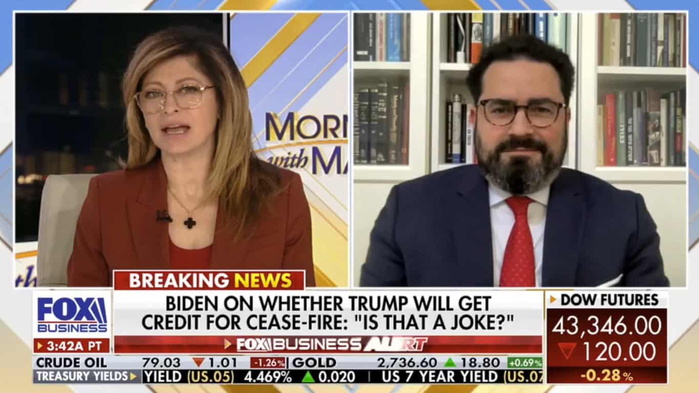 Maria Bartiromo, Fox Business: Iran may be weakened as a result of Israel’s aggressiveness despite Biden’s guidance. Biden kept telling them, end this, ceasefire now, don’t go into Rafah. Israel blew that off and did it. And yes, there were, there was a weakening of Iranian leadership and proxies as a result of that. Hillel, we’re watching this closely, and we want to see whether or not this actually sticks. Thank you, sir.