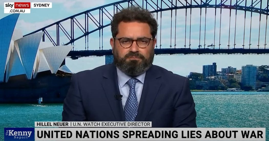 UN Watch Executive Director Hillel Neuer appeared on Sky News Australia to discuss the impact of misinformation from the UN and the world’s media following the horrific murder of two staff members from the Israeli Embassy in Washington, D.C.