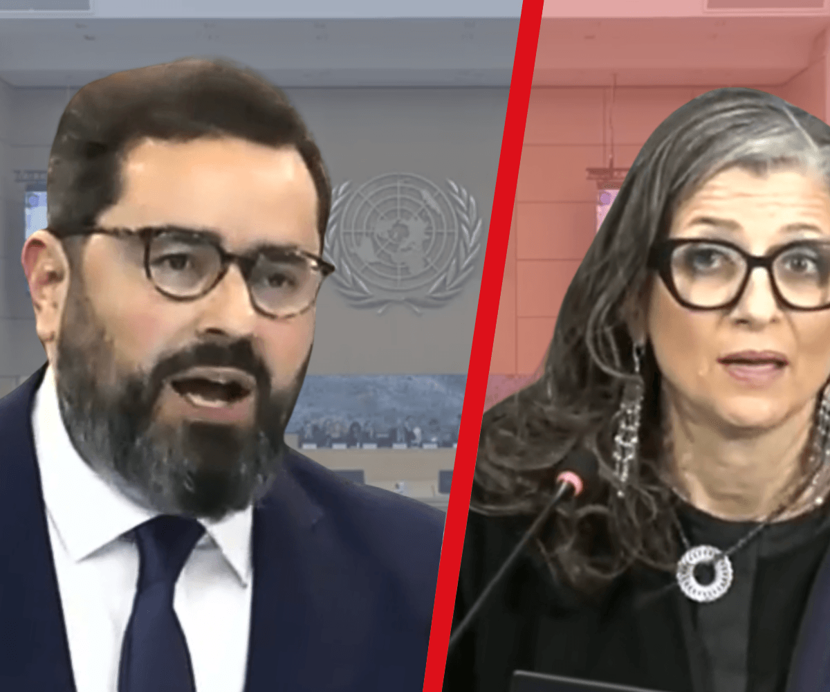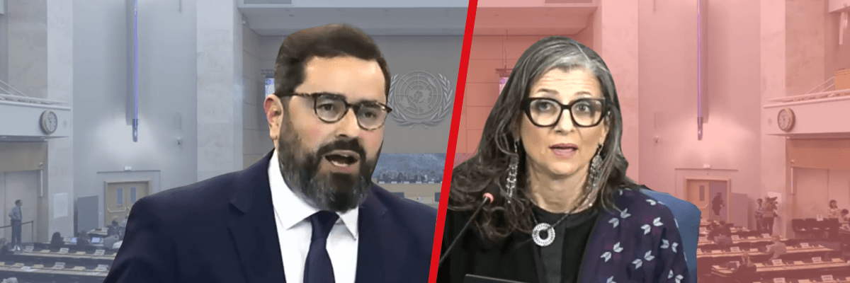 UN Watch Executive Director, Hillel Neuer, confronts the UN’s chief Hamas apologist, Francensca Albanese, in a fiery speech at the United Nations Human Rights Council’s 61st session.
