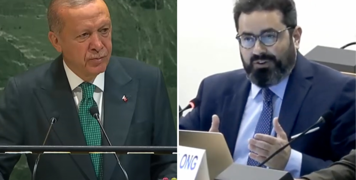 Addressing the United Nations, Turkish President Erdogan claimed that the West was losing its values, and that Israel was to blame. When UN Watch’s Hillel Neuer then took the floor at the UN Human Rights Council, he turned the tables on Turkey — whose delegation tried to silence him.