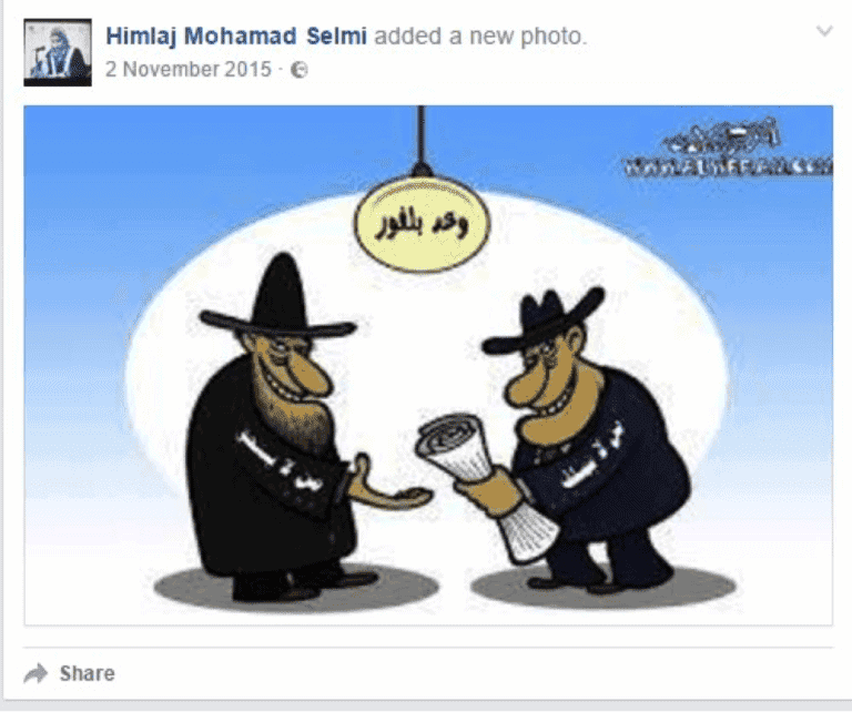 UNRWA lesson presenter Selmi posts an anti-Semitic cartoon. Image 3