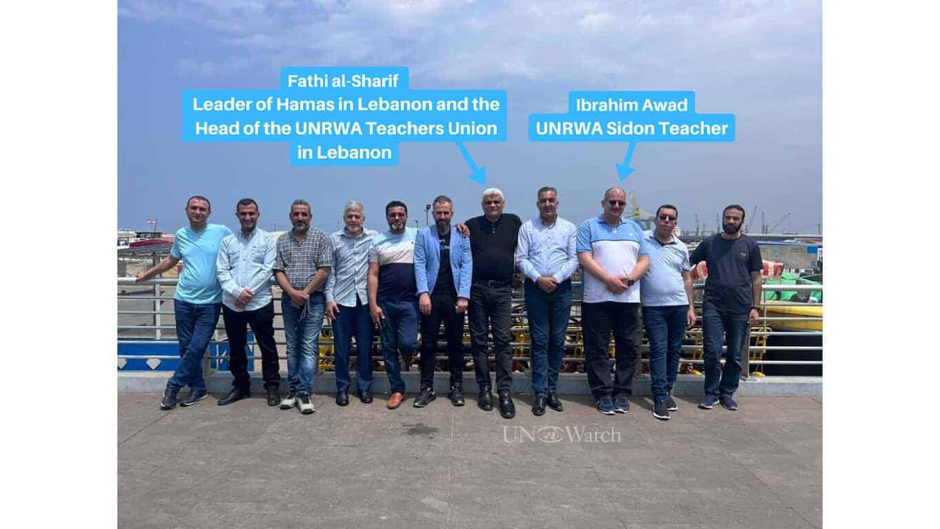 In this photo, Awad appears with other members of the UNRWA Lebanon Teachers Union, suggesting that he is involved with the Union.