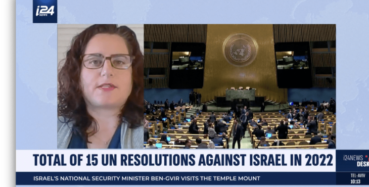 Dina Rovner, UN Watch Legal Adviser, was interviewed by i24 News about Israel’s treatment at the United Nations in 2022.