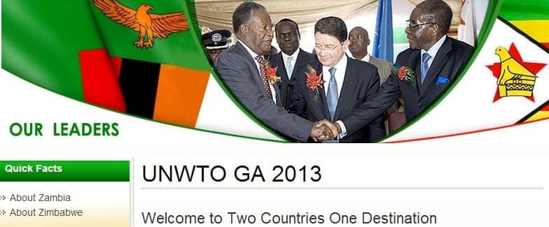 Screenshots from the UNWTO website, showing Zimbabwe’s Robert Mugabe, on the right under “Our Leaders”