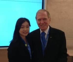 Photo: Michael Kirby, Chair of UN Commission of Inquiry on North Korea, with UN Watch intern Diane Rhim after her testimony