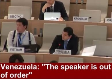 President: What I can say is that already I’ve noted that you agree that NGOs do have the right to speak. The issues relating to human rights don’t take place in an abstract context… If a speaker were to refer to relevant human rights issues under the agenda item under consideration, it is possible that the speaker may give examples or illustrations from specific examples from specific situations… I give the floor back to the speaker.