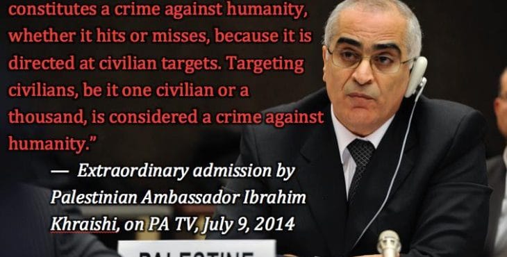 The extraordinary admissions by Ambassador Ibrahim Khraishi came in a July 9th interview on Palestinian TV. Click here for video and transcript.