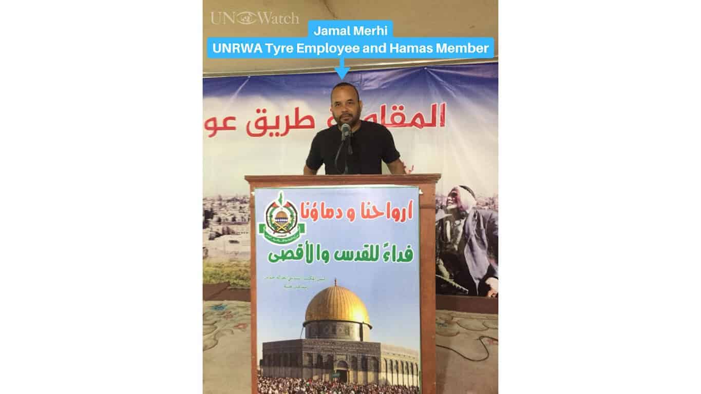 Jamal Merhi works for UNRWA in Tyre, Lebanon and is also a Hamas member. Merhi’s neutrality violations include the following:
