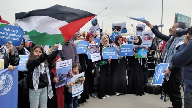 Under the title “No compromise on our national affiliation,” it arrived at noon on Wednesday, March 27, carrying hundreds of Palestinian refugees from various Palestinian camps in Lebanon, in front of the agency’s headquarters.