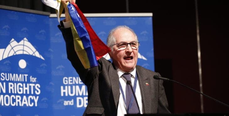 Venezuela fue uno de los temas principales del evento, que contó con un panel compuesto por Luis Almagro, Secretario General de la OEA; Antonio Ledezma, alcalde exiliado de Caracas que escapó de su encarcelamiento ilegal en Venezuela; Irwin Cotler, miembro de la comisión de investigación sobre violaciones a los derechos humanos por parte del régimen de Maduro y ex ministro de justicia de Canadá y María-Alejandra Aristeguieta Álvarez, presidenta de Iniciativa por Venezuela, quién dio la apertura del panel y ejerció como moderadora.