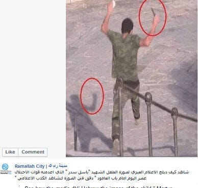 Maen Dajani - UNRWA linkMaen Dajani, identifying himself on his Facebook page as a teacher with UNRWA, joined in the PA-Hamas campaign to demonize Israeli self-defence against stabbings as “executions of teenagers,” when he shared post on October 14th (screenshot below) purporting to illustrate that Israeli media had photoshopped a knife into the hand of a 15-year-old “martyr” who attempted to stab an Israeli. Dajani, who failed to reply to another user’s comment on his post in which the photoshop claim is conclusively refuted, was first exposed by the blogger Elder of Ziyon.