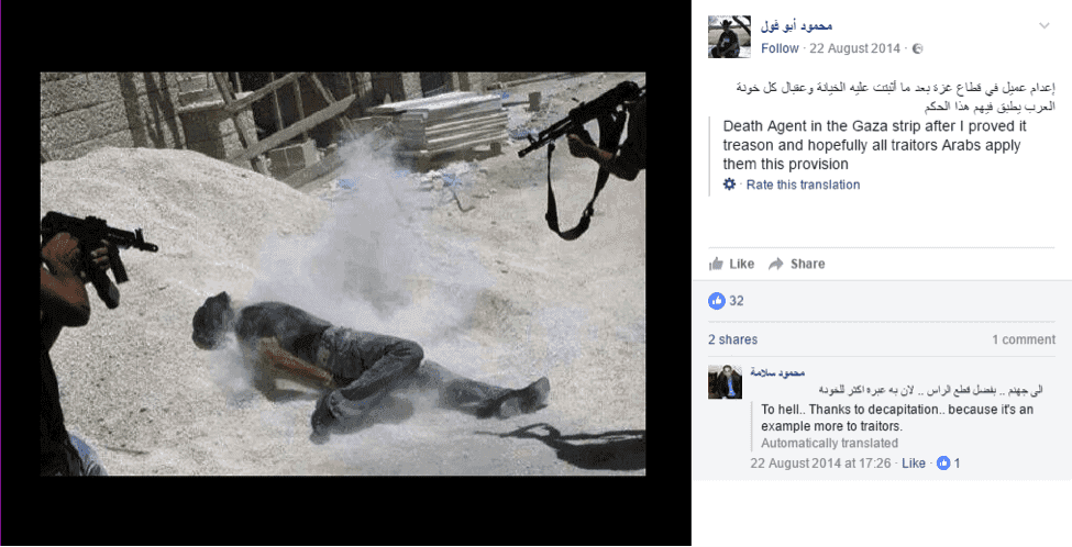 NRWA manager Abu Foul praised the August 2014 Hamas execution of a Palestinian in Gaza. Image 1