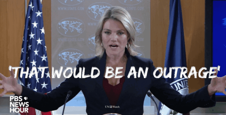 UN Watch’s exclusive report and appeal on Syria’s upcoming presidency of the UN’s top disarmament forum has sparked a global firestorm. The scandal arose yesterday in the U.S. State Department press briefing and then today in the White House press briefing, and is being reported in news media worldwide — including The Associated Press, EFE Brasil, Daily Mail, Lalibre.be, de Volkskrant, Aftonbladet, ntv Nachrichten, Tagesspiegel, New York Post, CNSNews.com, and RFE/RL.