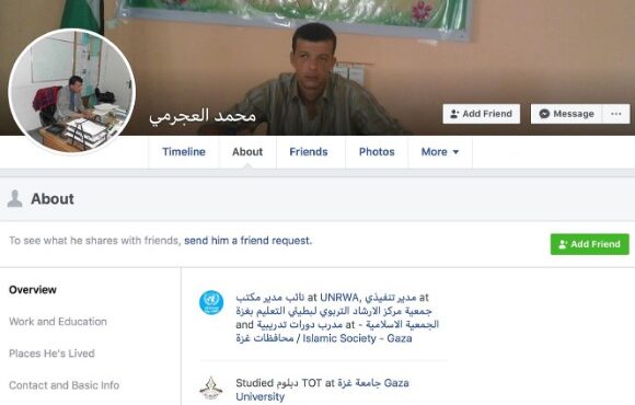 The text in the accompanying post begins by citing a famous Hadith attributed to Omar ibn al-Khattab, calling upon parents to teach their children swimming, archery, and horseback riding. Al-Ajrami adds his own call for parents to “teach your children to pull out their guns and rifles…Teach them that the Land can be won back only with a rifle.” Al-Ajrami, a senior UNRWA employee, is directing children to take up guns.