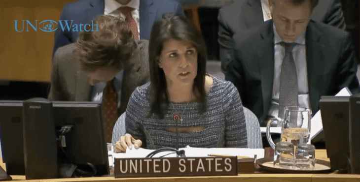 During the past year, as the representative of the United States, I have most often taken the position that this monthly session on the Middle East is miscast. As I’ve pointed out many times, this session spends far too much time on Israel and the Palestinians and far too little time on the terrorist regimes and groups that undermine peace and security in the region, chief among them Iran, ISIS, Hezbollah, and Hamas. That remains my view. And I expect that in future months I will continue to focus on those threats from the Middle East that draw too little attention at the UN.