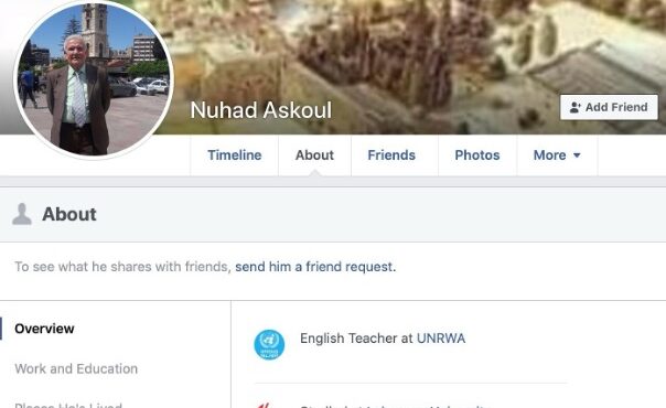 Nuhad Askoul lists himself as an English Teacher at UNRWA. He openly advocates for violence against Israel.Several of his posts feature maps that erase Israel, replacing it with Palestine.