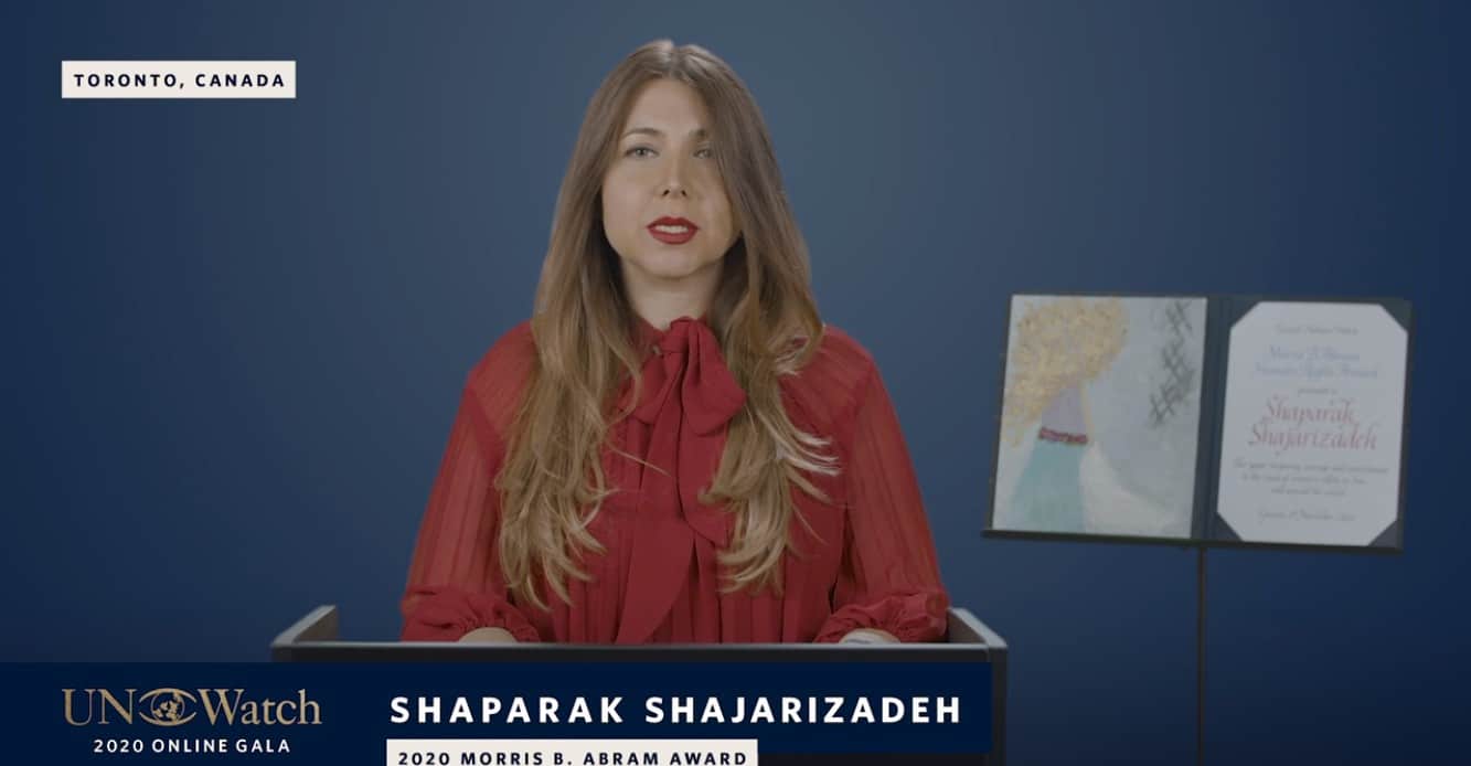 I thank UN Watch for this recognition, and for being my partner in bringing justice to victims of the Iranian regime.