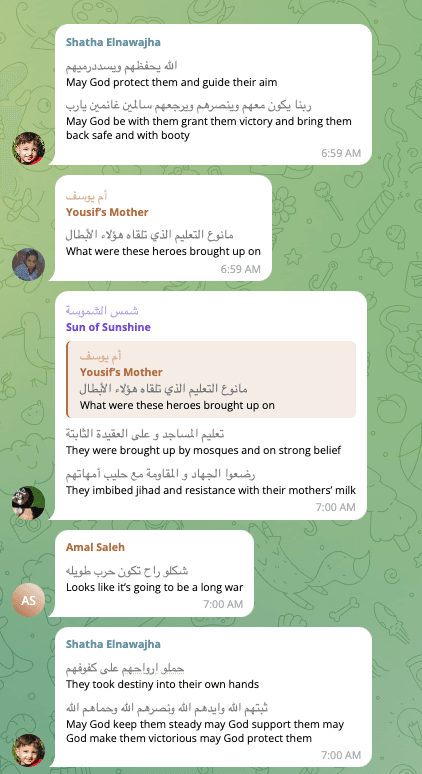 At 7:59 AM on the morning of October 7th, Shatha Husam Al Nawajha (aka Shatha Elnawajha) prayed for the well-being and success of the Hamas terrorists in carrying out their massacre in Israel—”May God protect them and guide their aim.” She wished not only for “victory,” but also for the terrorist’s “safe” return “and with booty.” At 8:00 AM, she lauded the terrorists for taking “their destiny into their own hands,” and again prayed for God to “protect” them and make them “victorious.”