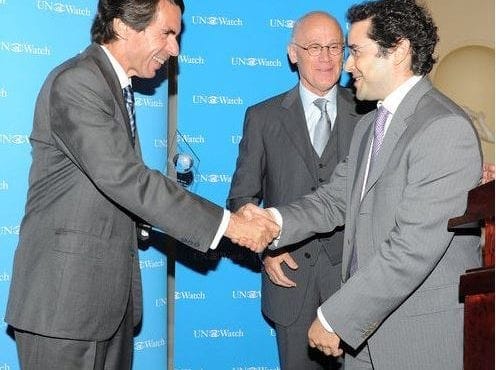 Mr. Aznar, who headed Spain’s government from 1996 to 2004, was awarded UN Watch’s Guardian of Freedom Award “for his leadership and courage in defending liberty, confronting tyranny and terror, as a champion of democracies united and strong.”