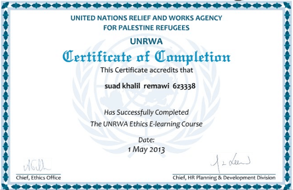 Suad Assi – UNRWA teaching link – certificate
