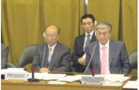 PRESS RELEASE North Korean ambassador So Sepyong (left) presiding over the Conference on Disarmament (CD), Geneva, August 4, 2011. Next to him is Kassym-Jomart Tokayev