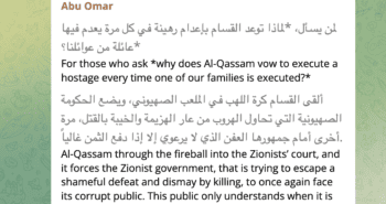Telegram Nickname: Abu Omar Abu Omar’s initial response to the October 7th attack was to support the Hamas terrorists. At 11:09 AM on October