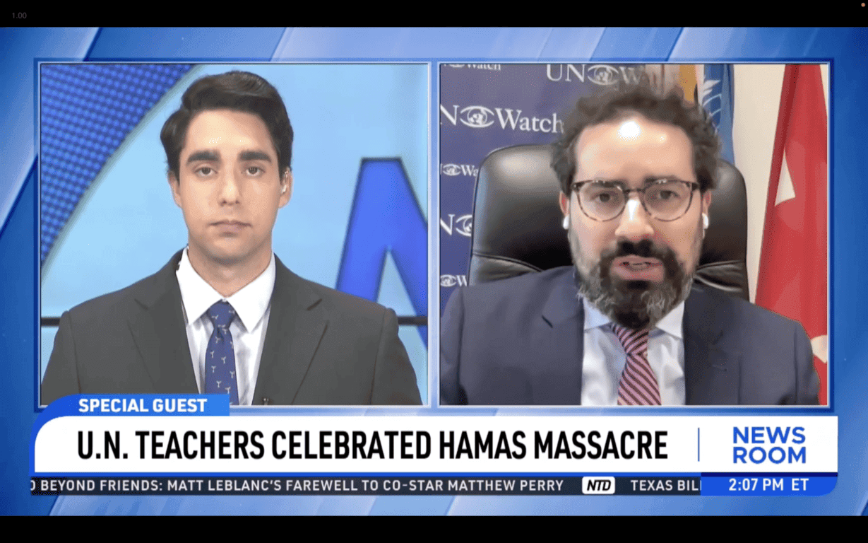 NTD News: I know there’s a video circulating on social media showing several UNRWA children saying they’re taught in school to hate Jews, and that they want to stab and run them over. One child even said he’s ready to be a suicide bomber. Now your organization has just recently released a report saying that 20 teachers and staff in this UN program celebrated the October 7th Hamas massacre of Israel. They called terrorists “heroes,” and said the day was “a great October.” Now, recently you presented these findings to the UN commission. What were their reactions? And do you see any movement here in terms of turning this situation around?