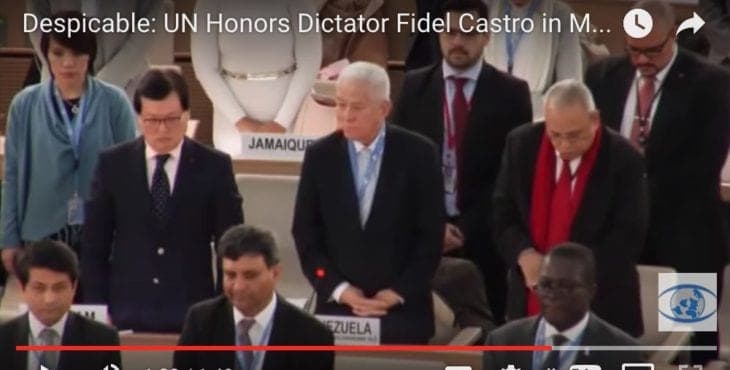 - Le Conseil des Droits de l’Homme a tenu une minute de silence pour le dictateur brutal et violateur des droits de l’homme Fidel Castro. UN Watch était la seule ONG dans la pièce ayant refusé de se lever.